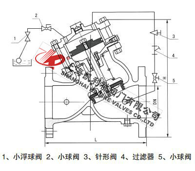4、H103X活塞式遙控浮球閥主要根據剖面、長度、高度、外形等作出說明。