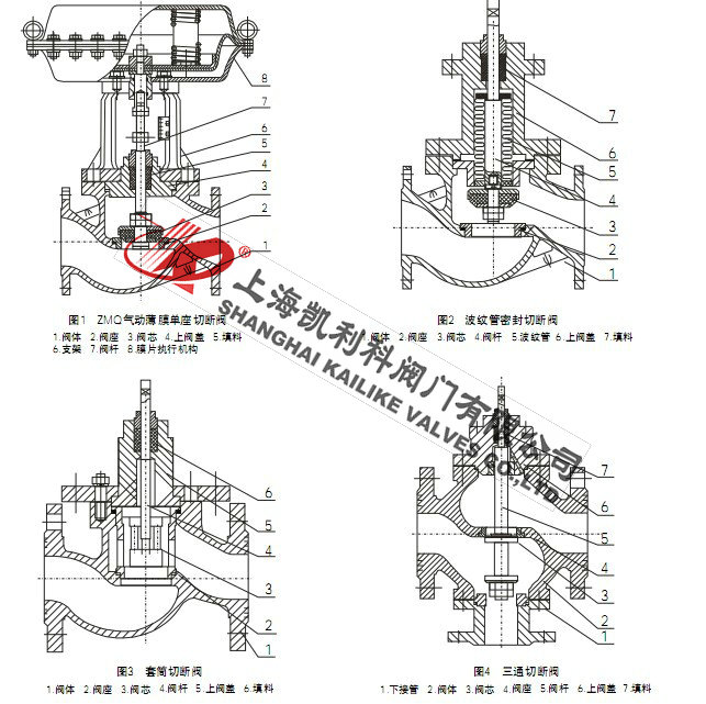 (1)氣動薄膜切斷閥采用多彈簧執行機構與調節機構用三根立相連,整個高度可減小約30%,重量可減輕約30%。