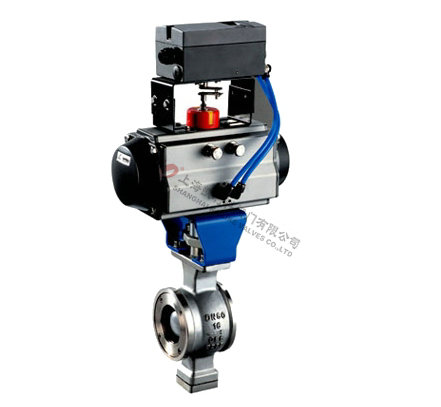 氣動(dòng)V型球閥是一種芯閥座采用金屬,或金屬對(duì)聚四氟乙烯密封配合的旋轉(zhuǎn)球閥,它將球閥和蝶閥的最佳控制特性結(jié)合成一體,既可用作控制調(diào)節(jié)閥,又可作關(guān)斷切斷閥。球芯上的V形切口與金屬閥座之間具有剪切作用,特別適用于控制高粘度,含纖維、固體顆粒及漿料等介質(zhì)。結(jié)構(gòu)制造紙工業(yè)的紙漿顯得尤為優(yōu)越。閥門(mén)的流通能力大、壓力損失小、且介質(zhì)不會(huì)沉積在閥體中腔,閥門(mén)不僅具有近似等有分比的流量特性、可調(diào)范圍大,最大可調(diào)比為100:1,還具有精確調(diào)節(jié)與可靠定位的功能。